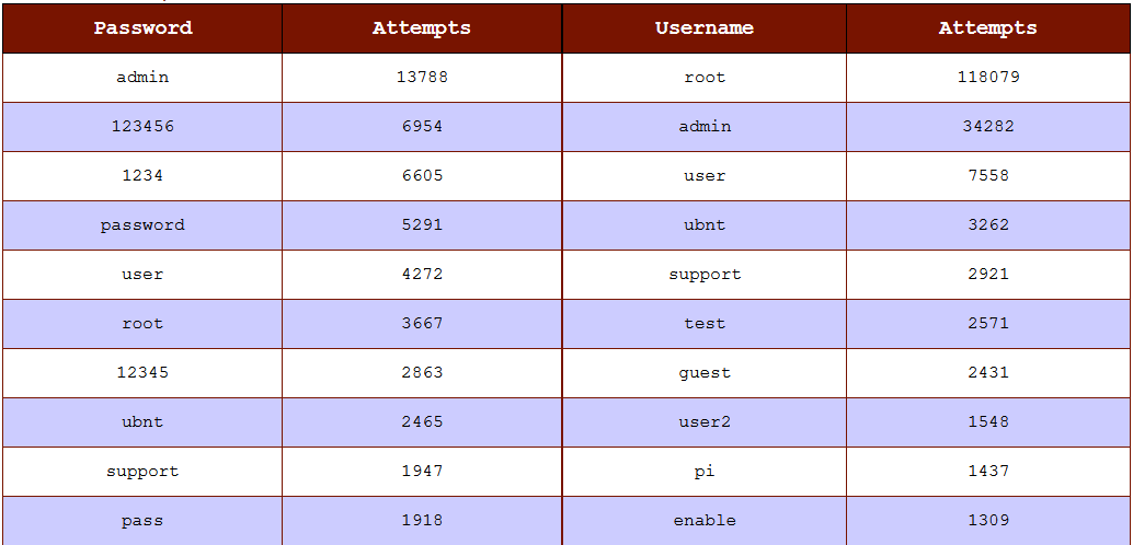 We use passwords just about everywhere in our daily lives. It's difficult to think of an online service where we don't have a need to enter some kind of credentials to access our content. DShield honeypots collect a variety of data, including passwords, that are submitted from SSH and telnet attacks.