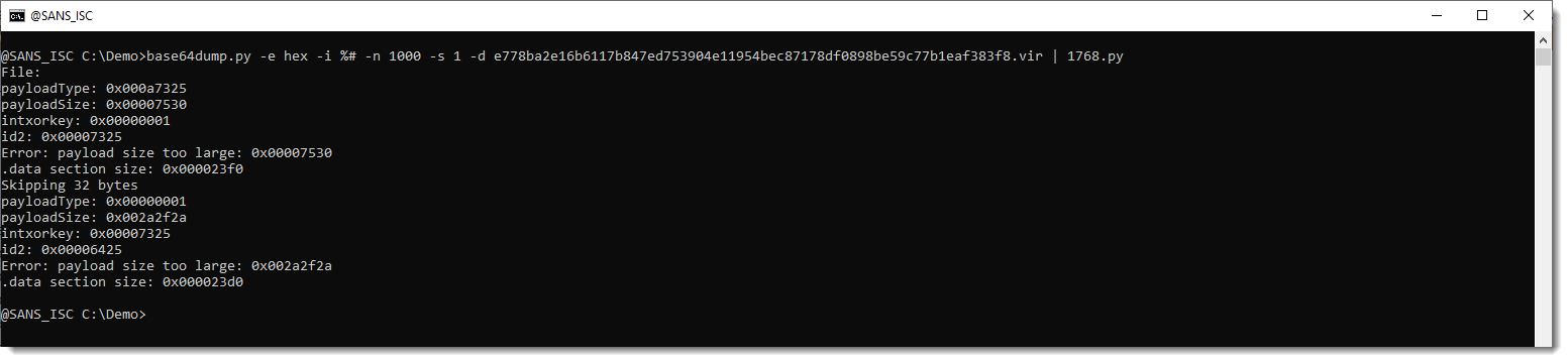 The reason I extracted a PE file in my last diary entry, is that I discovered it was the dropper of a Cobalt Strike beacon @DebugPrivilege had pointed me to. My 1768.py tool crashed on the process memory dump. This is fixed now, but it still doesn't extract the configuration.